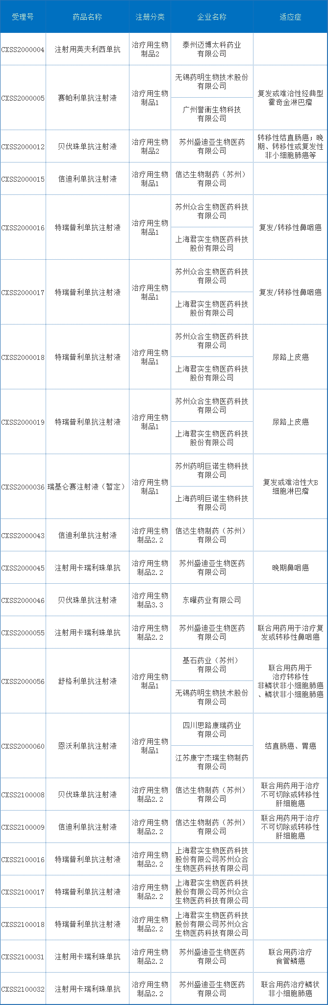 1.2021年生物制品申报情况