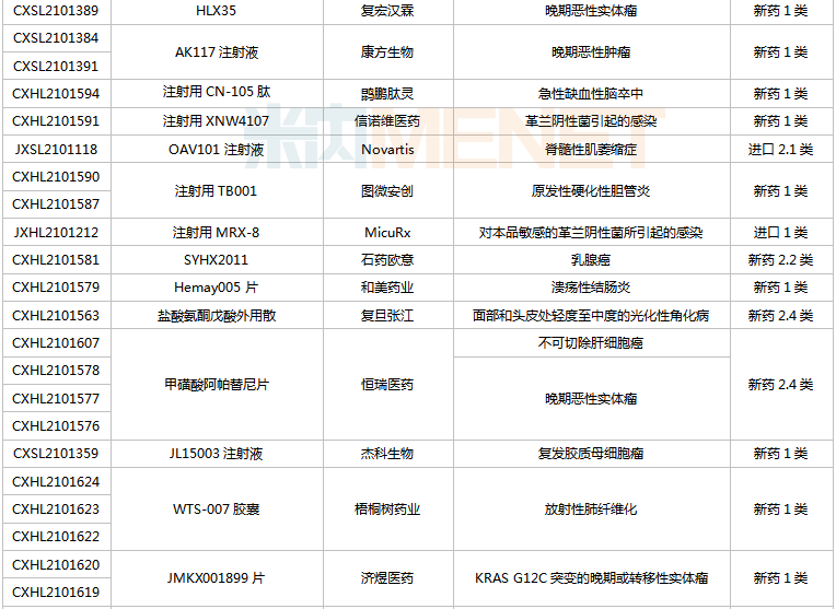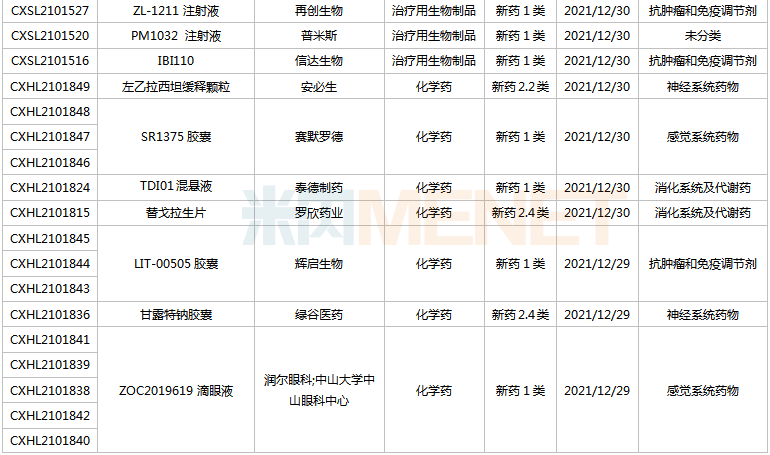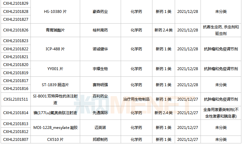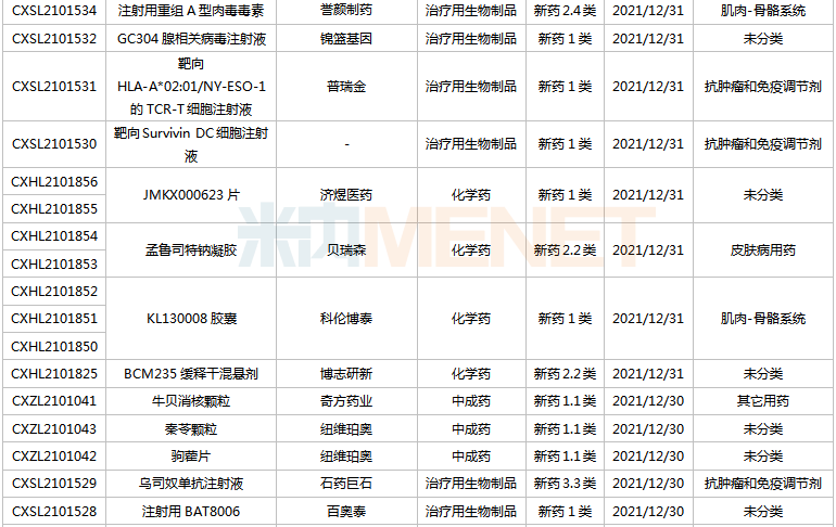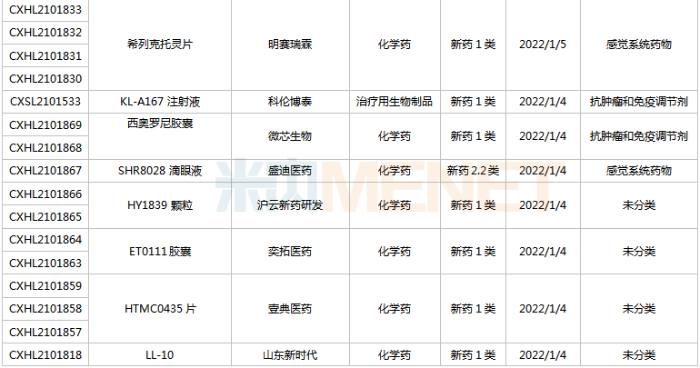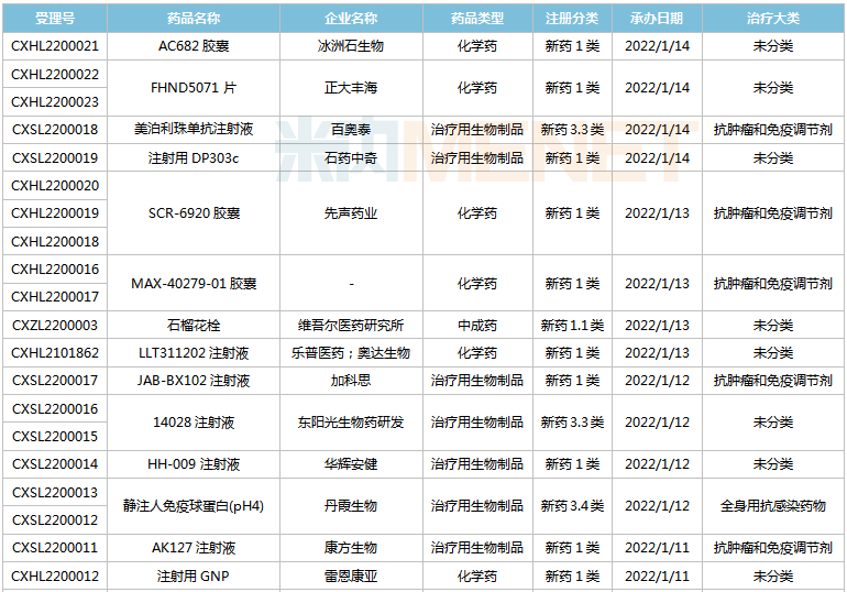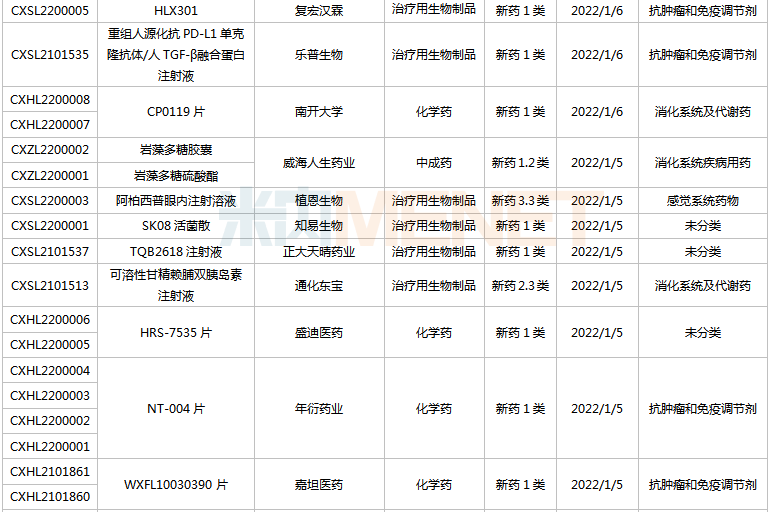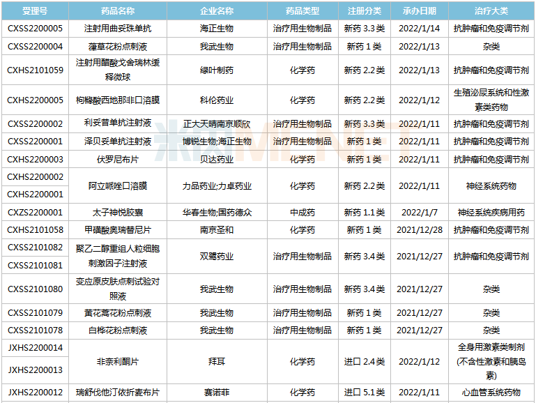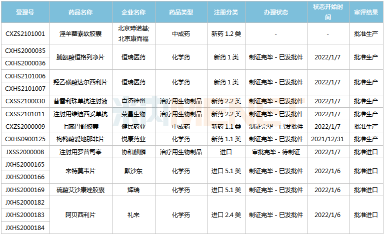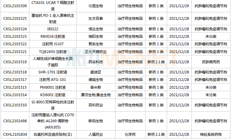 (2021.12.25-2022.1.14)新药上市申请审评审批状态更新