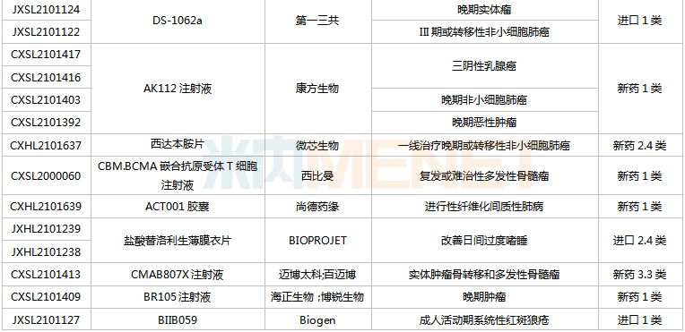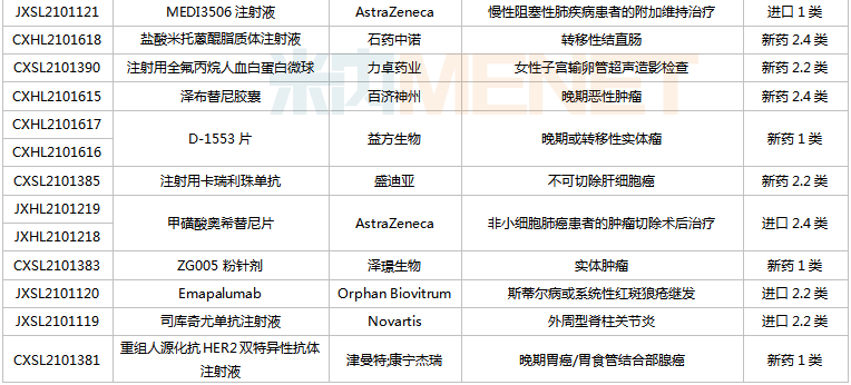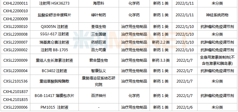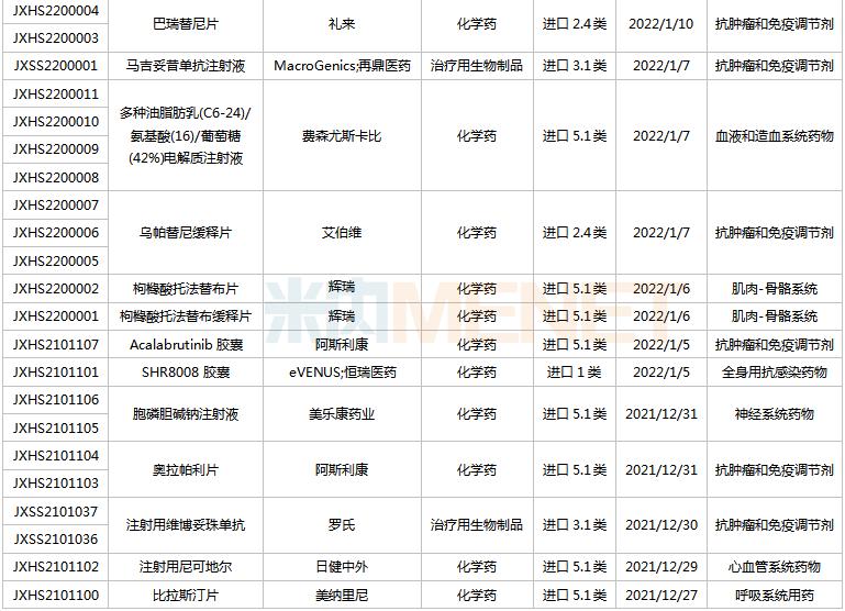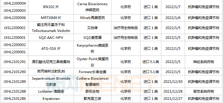 (2021.12.25-2022.1.14)获批临床的国产/进口新药