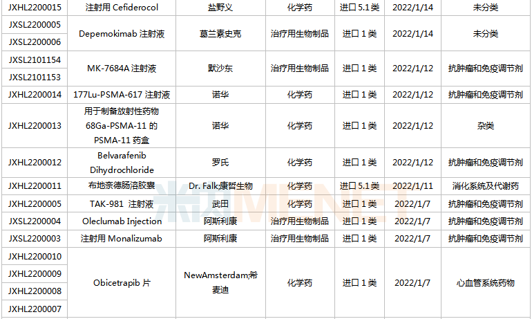 (2021.12.25-2022.1.14)获承办的国产/进口新药上市申请