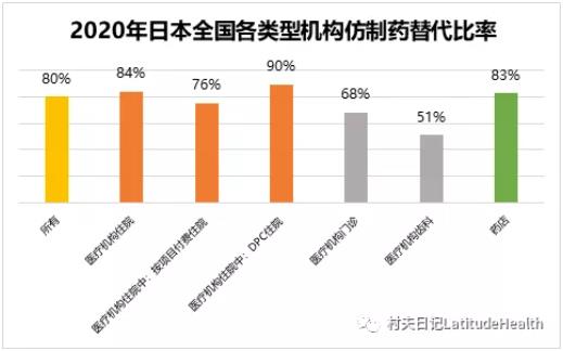 图表:2020年日本全国各类型机构仿制药替代比率