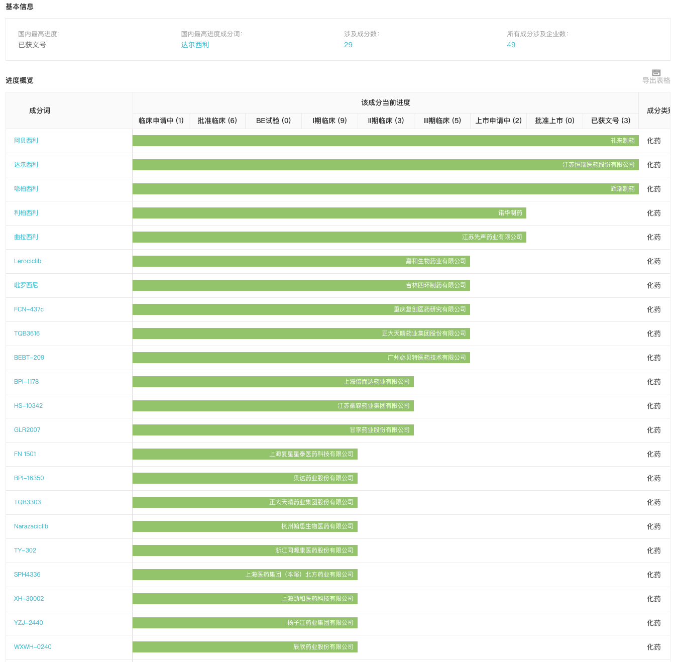 发生变化的创新药在研进度分布