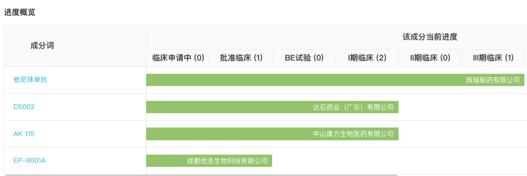 据 Insight 数据库显示,AK115 在 2021 年 11 月首次递交 IND 申请。目前国内共 4 款 NGF 单抗处于临床开发中,详见下图: