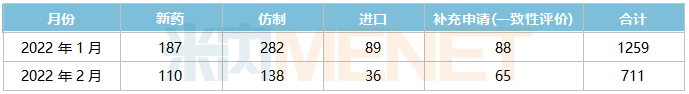 据米内网MED2.0中国药品审评数据库统计,2022年2月CDE共承办药品注册申请711件。