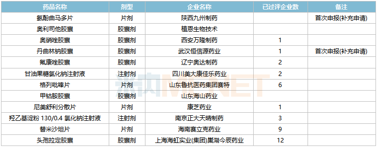 10个存量品种首次有企业申报一致性评价