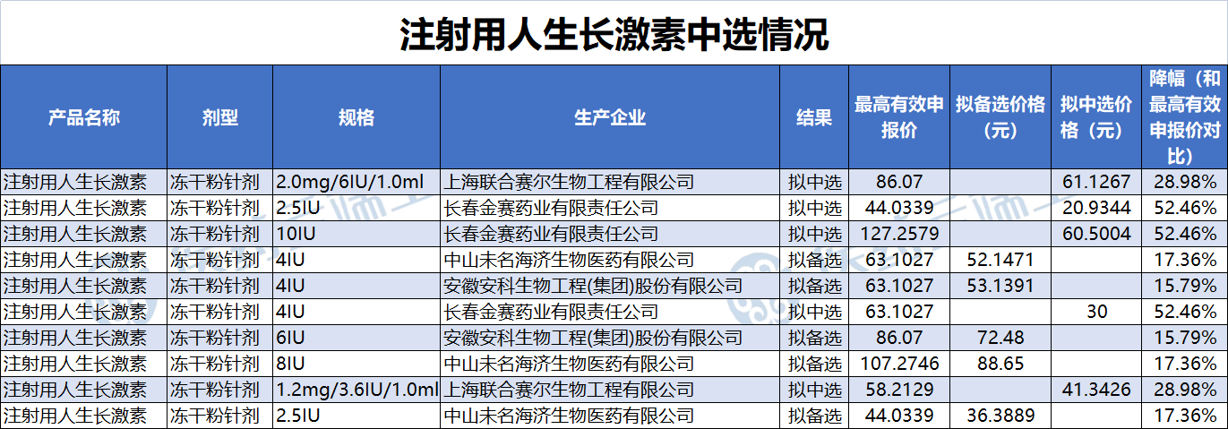 对于业界关注的重组人生长激素这个品种,此前长春高新、安科生物两家企业双双弃标已经引起业界极大的讨论,从此次公布的拟中选结果来看,唯一一家申报的诺和诺德也并未中选。