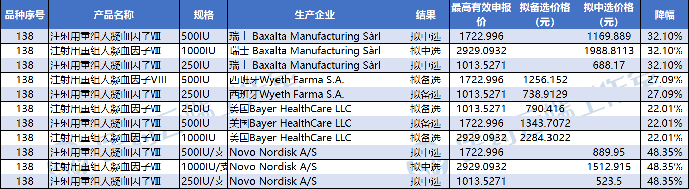 重组人生长激素水针剂型无企业中选,注射用重组人凝血因子Ⅷ外企包揽