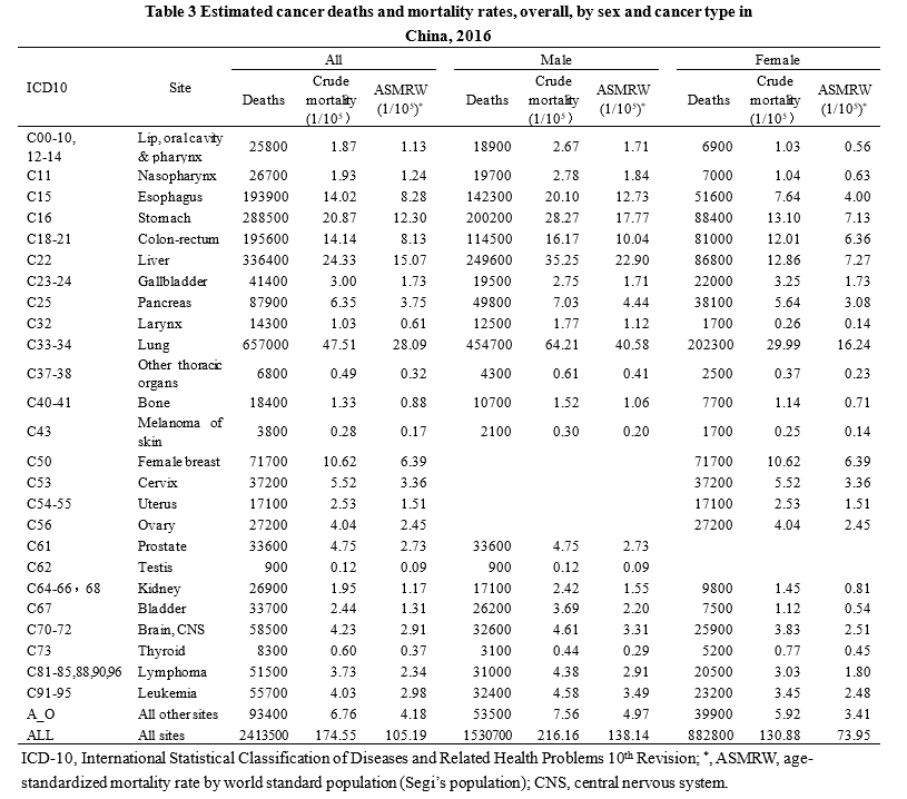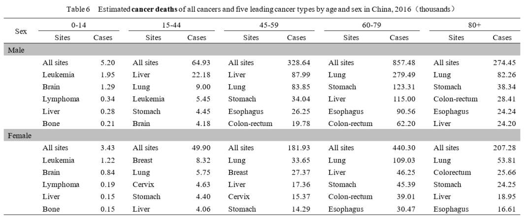2016年我国癌症死亡情况