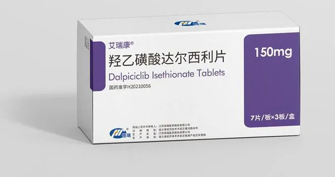 达尔西利是恒瑞研发的一款口服、选择性小分子CDK 4/6抑制剂,为1类新药,于2021年12月31日获得国家药监局批准上市,联合氟维司群用于激素受体(HR)阳性,人表皮生长因子受体2(HER2)阴性的经内分泌治疗后进展的复发或转移性乳腺癌患者的治疗,其也是目前为止获批的首个国产原研CDK4/6抑制剂。