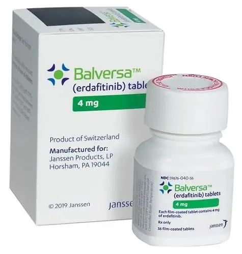 厄达替尼是Astex公司研发的一款口服泛FGFR抑制剂,2008年强生与Astex公司就该药达成独家全球授权和合作协议,2019年4月被FDA批准用于携带特定FGFR基因改变的局部晚期或转移性尿路上皮癌成人患者。它的获批是基于一项II期临床试验BLC2001的结果:其中87名晚期FGFR基因突变的膀胱癌患者接受靶向治疗后客观缓解率(ORR)为32.2%。