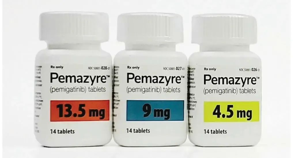 4月6日,信达生物宣布其引进的佩米替尼片(Pemigatinib)在中国获批上市,用于既往至少接受过一种系统性治疗,且经检测确认存在有FGFR2融合或重排的晚期、转移性或不可手术切除的胆管癌成人患者的治疗。