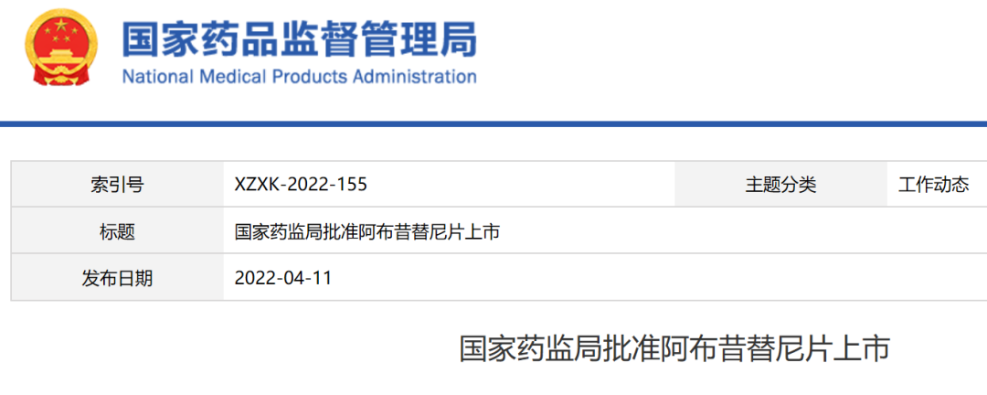[1]国家药监局批准阿布昔替尼片上市 .Retrieved Apr 11,2022, from https://www.nmpa.gov.cn/yaowen/ypjgyw/20220411140856159.html