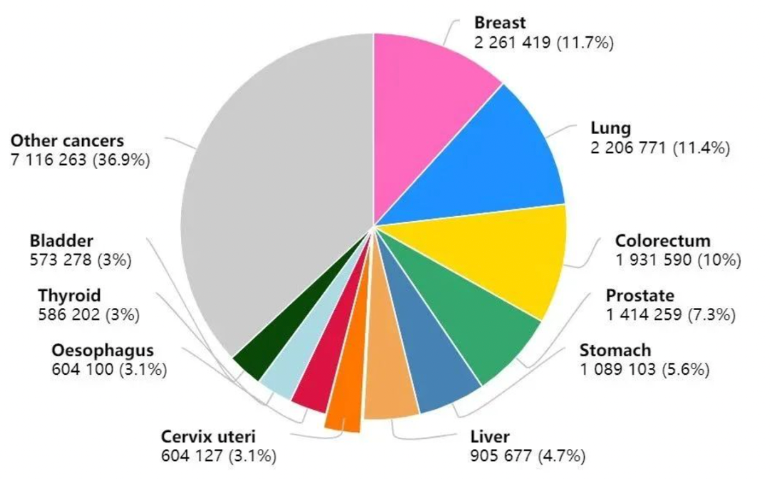 全球乳腺癌新发病例高达 226 万例,超过了肺癌的 220 万例,乳腺癌取代肺癌,成为全球第一大癌。