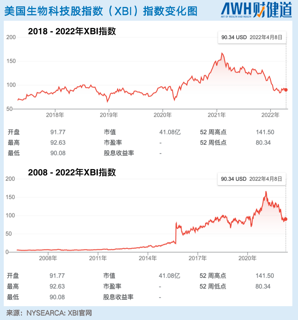 上世纪70年代,正在读高中的Tom Jacobs在一家药店兼职。货架上摆满了由霍夫曼·拉罗什、西巴·盖吉、华纳·兰伯特、卡特·华莱士等Biotech企业生产的药物。 彼时的他对眼前的巨变浑然不觉。殊不知,Biotech一词正在进入科学术语中,专注于Biotech的企业正处于从无到有的开创期。 国际上把Biotech(生物科技)定义为:以基因工程为核心,包括细胞工程、酶工程、发酵工程和蛋白质工程在内的互相联系、互相渗透的高技术。 时间会让人看清很多事情。30年后,Tom Jacobs成为CompleteGrowthInvestor联合创始人和业内颇具影响力的资深投资人士。他在这30年内,见证了这些企业在上世纪80-90年代初期被泡沫化,而后在90年代中期急转直下,随着第一次生物产业投资狂潮渐渐平息,走进至暗时刻。 Biotech在此轮周期的结局先按下不表。讲到这里可以发现,当年美国Biotech的经历与眼下的处境如出一辙。 从具有标杆属性的美股纳斯达克生物医药指数(XBI)来看,2020年biotech企业被疫情急速催热,在2021年到达顶点后,如今跌幅超过50%。全球医药投资再次进入至暗时刻。