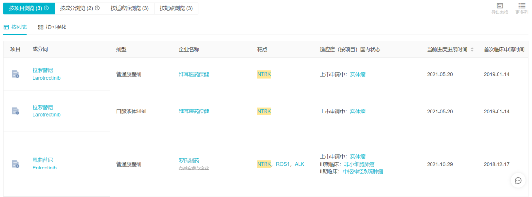 国内申报上市的 NTRK 抑制剂