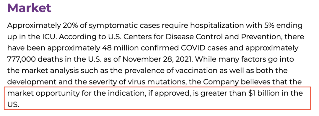 Sabizabulin产生的收益直接来自于医院。考虑到它可以降低7%-14%的死亡率和住院率,Veru对其未来收益充满信心。