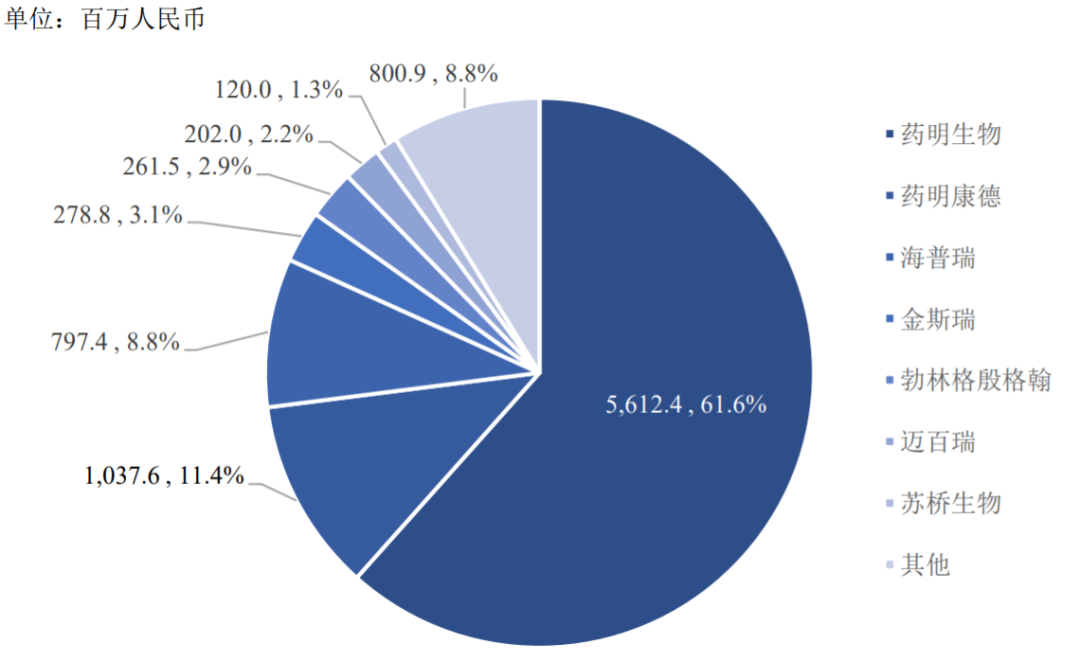 目前国内的医药合同研发外包服务行业中,药明系占据了绝对龙头地位。在生物药研发领域,药明生物也已凭借先发优势以及技术壁垒,占据了相当大的市场份额,2020年达到了61.6%,得益于该公司“跟随分子”和“赢得分子”的双战略,预计其市场份额将持续增长。