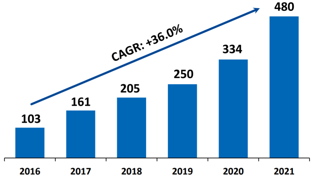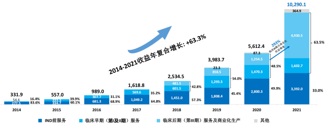 ▲2014年~2021年药明生物收入