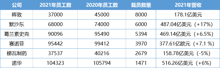 此外,根据医药魔方invest公众号,晖致、默沙东、GSK在2021年员工数量减少均超过5000人。