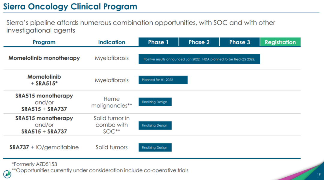 Sierra Oncology 总裁兼首席执行官 Stephen Dilly 博士说:“与 GSK 的合作为 Sierra Oncology 创造了最佳机会,以实现其提供治疗罕见癌症的靶向疗法的使命,同时也为我们的股东。现在,我们拥有一个拥有全球基础设施和肿瘤学专业知识的合作伙伴,这使我们能够尽快在全球范围内向患者提供Momelotinib。”