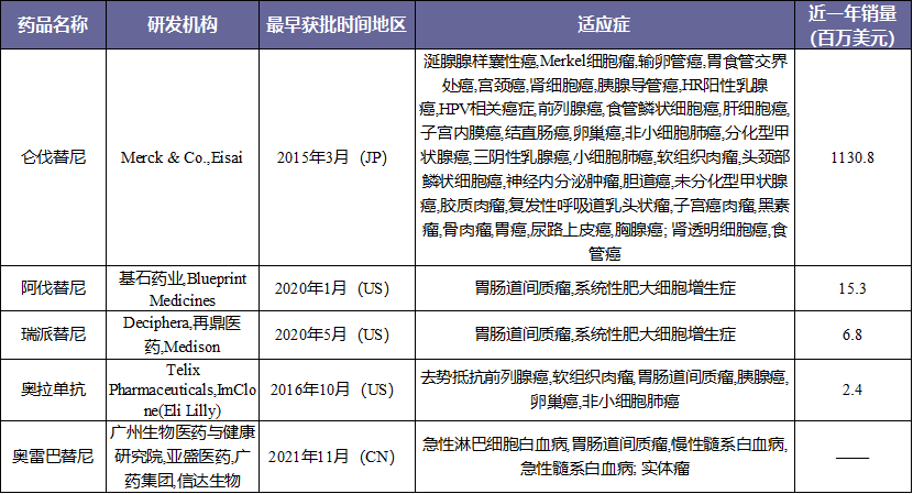 获批上市的靶向PDGFRα的药物