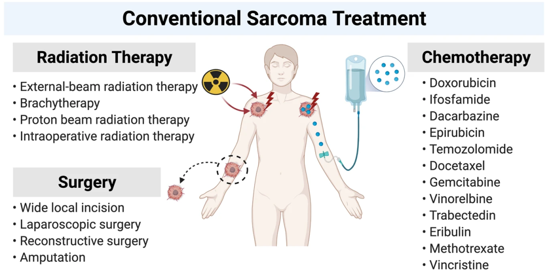 STS的标准治疗包括手术、放射疗法和/或化学疗法,对于晚期、不可切除或转移性疾病患者,治疗通常包括使用单一药物(例如多柔比星)或基于蒽环类药物的联合方案进行化疗。然而这些患者的预后仍然很差,接受治疗的转移性疾病患者的中位总生存期约为 12-18 个月。通常STS是一种对辐射敏感的癌症,适用于全身性放射性核素治疗,而 olaratumab 靶向 PDGFRα 的能力使其有潜力成为放射性核素靶向剂的候选药物。