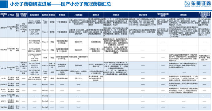 除了这三款进展到III期的药物之外,国内还有先声、歌礼、云顶新耀等多家企业布局新冠小分子药物的研发,多数处于研发早期阶段。其中进展最快的是前沿生物的FB2001。
