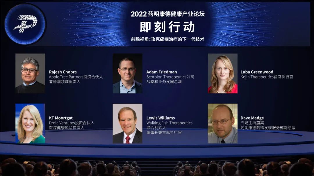 在第二日的议程中,来自Walking Fish、Scorpion、Kojin几家专注前沿抗肿瘤药物研发的新锐公司嘉宾,以及来自肿瘤领域风投机构Apple Tree Partners、Droia Ventures的投资人,将分享他们的思考和洞见。其中,Walking Fish和Scorpion均入选了2022年BioSpace年度30家新一代生物新锐公司榜单,Kojin公司曾入选美国化学会旗下的C&EN网站2021年公布的值得关注的10家初创公司名单。他们将就“攻克癌症治疗的下一代技术”展开深入探讨。