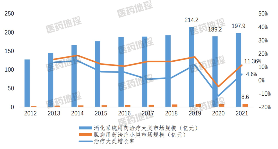 图1: 2012-2021年样本医院消化系统用药市场表现