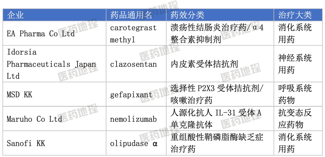 在PMDA公布的一季度新药中,有5个新成分新药是全球首次在日本批准上市。