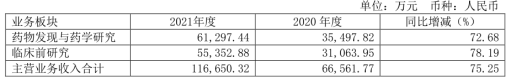 2021年,临床前研究实现营业收入5.54亿元,同比增长78.19%;新签订单14.09亿元,同比增长104.24%。