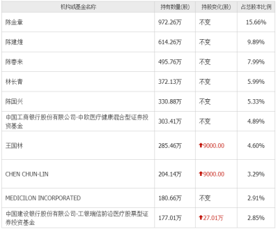 截至2021年12月31日,美迪西的前十大股东中,陈建煌持股9.89%;陈春麟持股3.29%,陈春麟的堂弟陈金章持股15.66%,弟弟陈春来持股7.99%,妹夫王国林持股4.6%;陈金章的侄女婿林长青持股5.99%,侄子陈国兴持股5.33%;