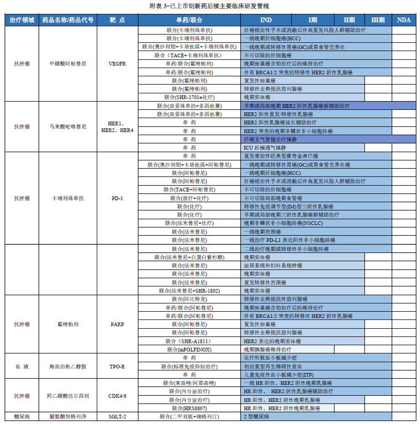 报告也披露,恒瑞医药积极响应国家倡导的罕见病药物的注册研发,目前正在肿瘤、血液系统等领域研发3款罕见病药物与孤儿药。