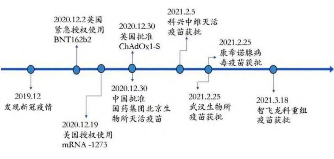 图2为全球部分新冠疫苗首次获批时间轴,来自《新型冠状病毒变异株以及疫苗研究现况》