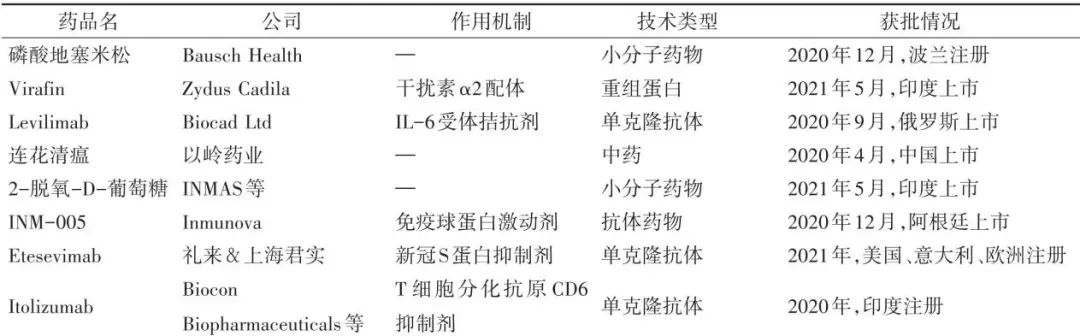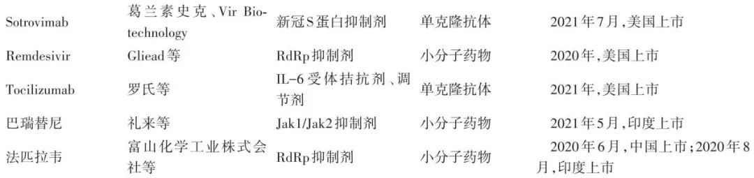 图5为全球范围内获批或紧急使用授权的新冠药物,来自《2021年新冠病毒变异、跨种传播及疫苗和药物研究热点回眸》