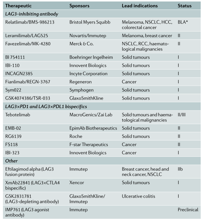 部分上市及在研LAG-3项目(来源:Nature Reviews Drug Discovery)