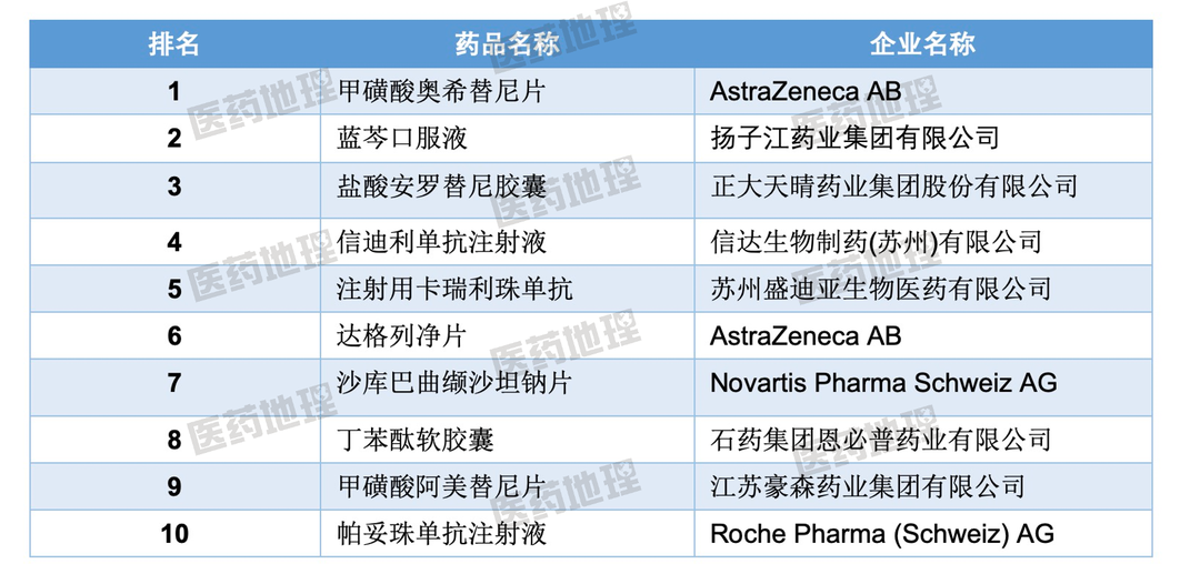 top10品种占比接近5成超半数来自抗肿瘤领域