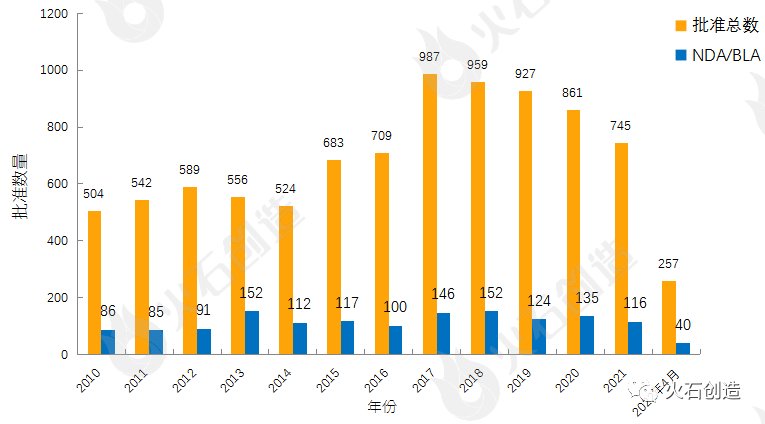 图1:2010—2022年4月FDA药物批准数量变化情况 数据来源:美国食品药品监督管理局