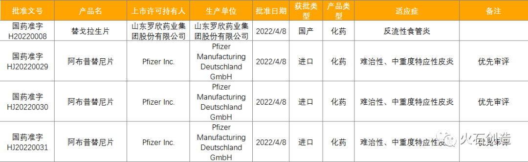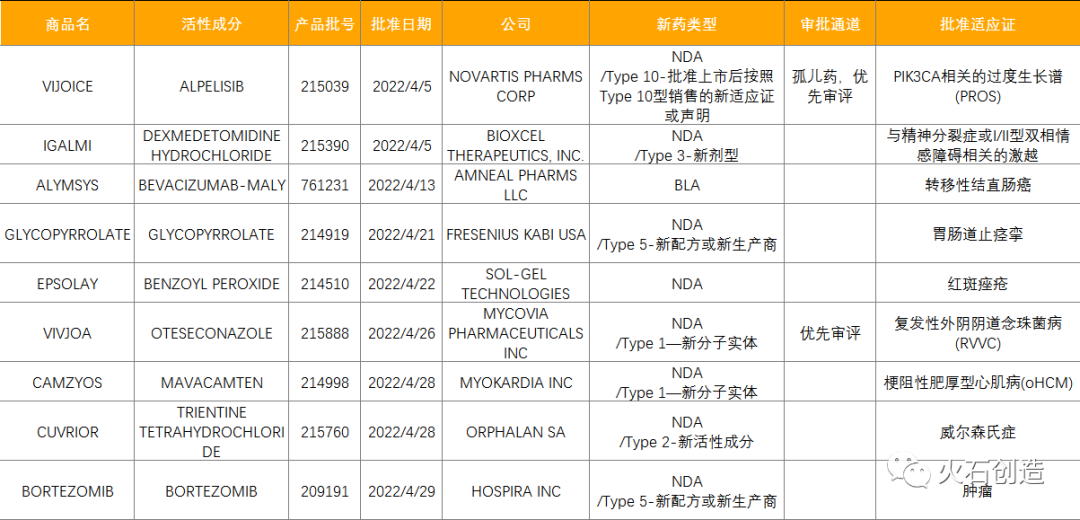 表1:2022年4月FDA批准NDA/BLA药物列表