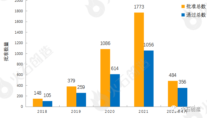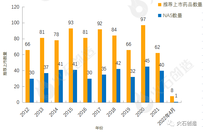 图2:2012—2022年4月EMA推荐上市药品数量变化情况 数据来源:火石创造数据库
