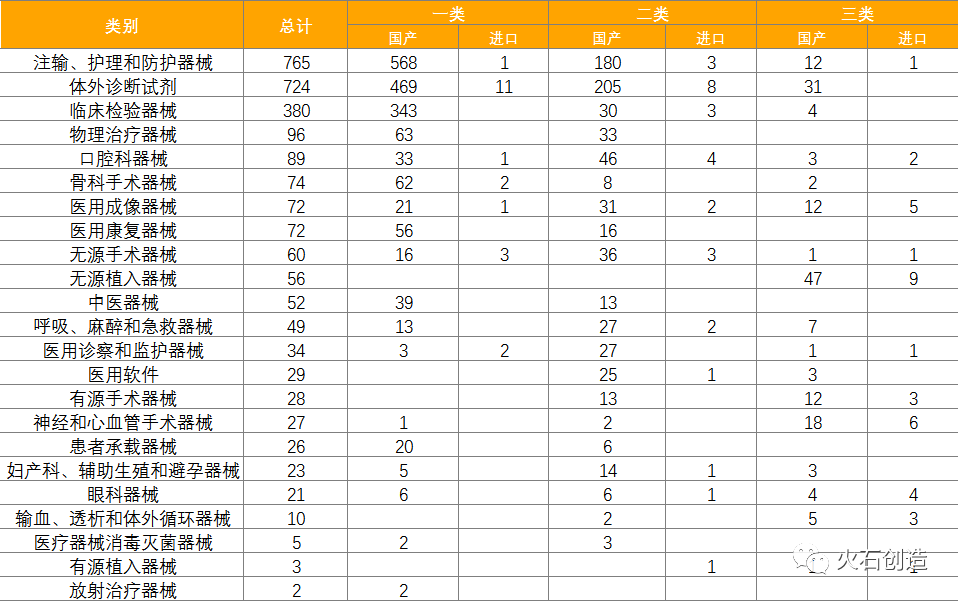 表6:2022年4月国产、进口医疗器械批准注册类别数目分布情况