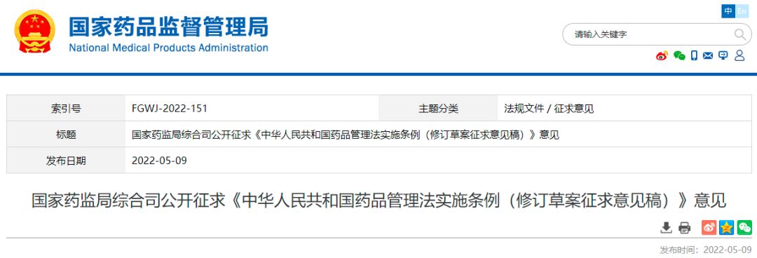 为贯彻实施新制修订的《中华人民共和国药品管理法》《中华人民共和国疫苗管理法》,进一步加强药品监督管理,保障人民用药安全,促进药品行业高质量发展,药监局组织对《中华人民共和国药品管理法实施条例》进行研究,形成修订草案征求意见稿,现向社会公开征求意见。公众可通过以下途径和方式反馈意见: