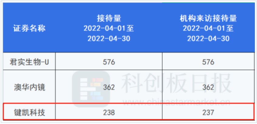 4月期间,键凯科技共接待了237家机构的调研,位列当月被调研机构数最多的科创板生物医药企业第三名。