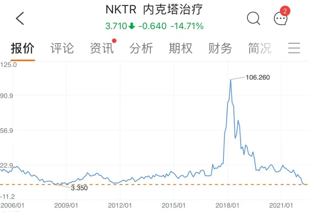 但Nektar在发展过程也经历了转型,早期主要销售医用聚乙二醇材料,转型为聚乙二醇化药物的研发型企业,仅对原有老客户继续出售聚乙二醇材料,以至于公司近几年来业绩增长持续低迷,股价一路向下。