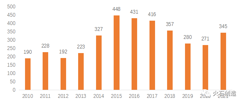 图1:2010-2021年化药原料药领域投融资活动数量来源:火石创造数据库