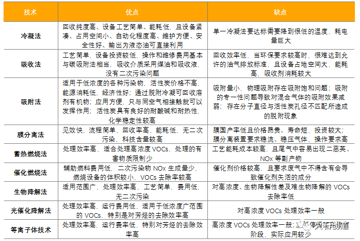 表1: VOCs及恶臭气体治理技术对比