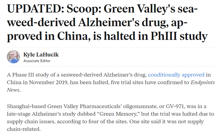 UPDATED: Scoop: Green Valley's seaweed-derived Alzheimer's drug, approved in