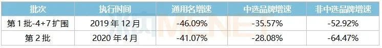 第1批4+7扩围和第2批集采品种在公立医疗机构执行期的销售表现情况表