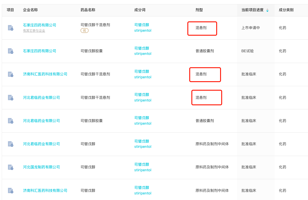 据 Insight 数据库 显示,当前国内司共有 3 家企业在开发替戊醇混悬剂分别为石家庄四药、济南科汇医药和河北君临药业。其中,石家庄四药为首家申报上市的企业。