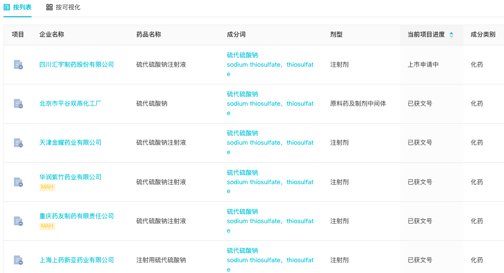 硫代硫酸钠注射液为国家短缺药品清单品种,据 Insight 数据库显示,当前国内仅有 5 家企业正在开发硫代硫酸钠注射剂(包括硫代硫酸钠注射液和注射用硫代硫酸钠),其余 4 家企业已获得批文。